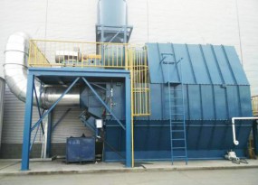 颗粒层除尘器具有结构简单、维修方便、耐高温、耐腐蚀、效率高、占地面积小、投资省等优点。我国使用的颗粒层除尘器有塔式旋风颗粒层除尘器和沸腾床颗粒层除尘器。对于前者,含尘气体经旋风除尘器预净化后引入带梳耙的颗粒层,使细粉尘被阻留在填料表面活颗粒层空隙中。填料层厚度一般为100-150mm,滤料常用粒径2-4.5mm石英砂,过滤气速为30-40m/min,清灰时反吹空气以45-50m/min的气速按相反方向鼓进颗粒层,使颗粒层处于活动状态,同时旋转梳耙搅动颗粒层。反吹时间15min,反吹周期为30-40min,总压力损失为1700-2000Pa,总除尘效率在95%以上。反吹清灰的含尘气流在返回旋风除尘器。这类除尘器常采用3-20个筒的多筒结构,排列成单行或双行。每个单筒可连续运行1-4小时。沸腾颗粒层除尘器不设梳耙清灰,反吹清灰风速较大(50-70m/min),使颗粒层处于沸腾状态。